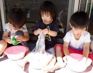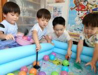 お洗濯・プールを使ってのボールすくい・魚つり・真剣です o(^o^)o